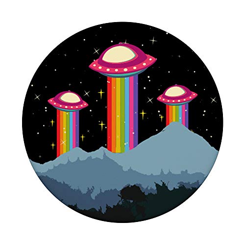 Alien UFO Regenbogen Berge PopSockets PopGrip: Ausziehbarer Sockel und Griff für Handys/Tablets mit Tauschbarem Top