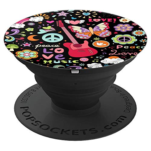 Hippie Peace Liebe Muster Schwarz PopSockets PopGrip: Ausziehbarer Sockel und Griff für Handys/Tablets mit Tauschbarem…