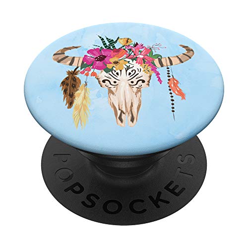 Stier Kuh Schädel Boho Blau – PopSockets Ausziehbarer Sockel und Griff für Smartphones und Tablets
