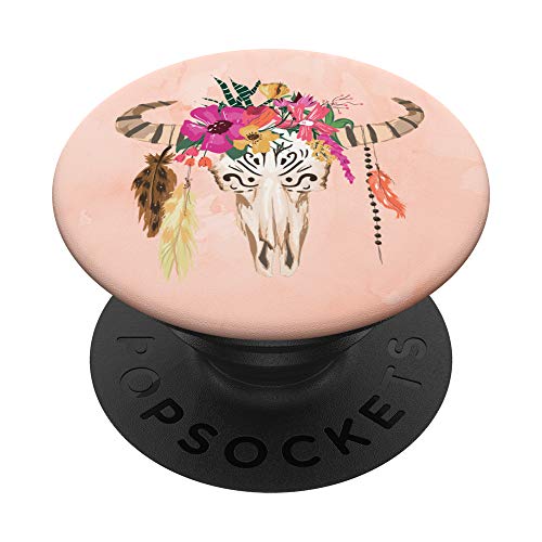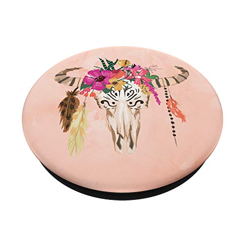 Stier Kuh Schädel Boho Koralle – PopSockets Ausziehbarer Sockel und Griff für Smartphones und Tablets
