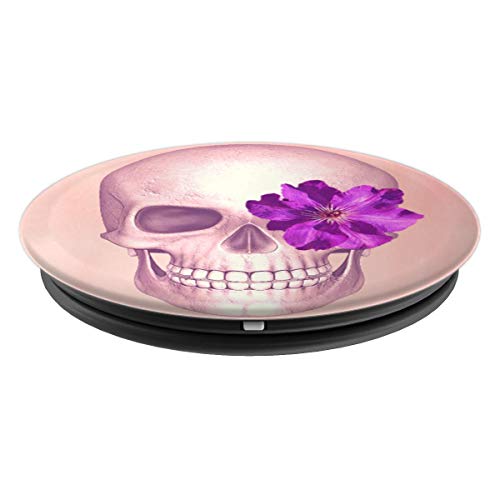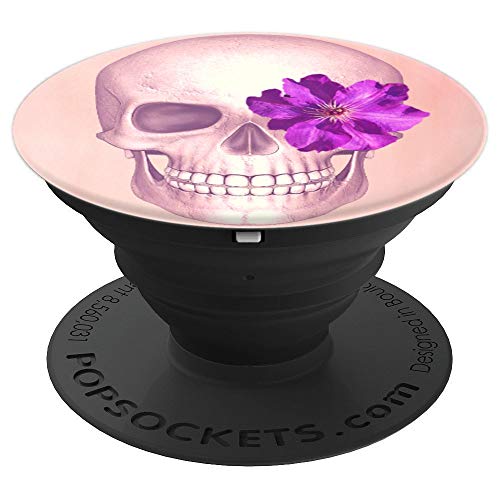 Totenkopf Schädel Blume Wasserfarbe Pink – Skull Flower PopSockets PopGrip: Ausziehbarer Sockel und Griff für Handys…